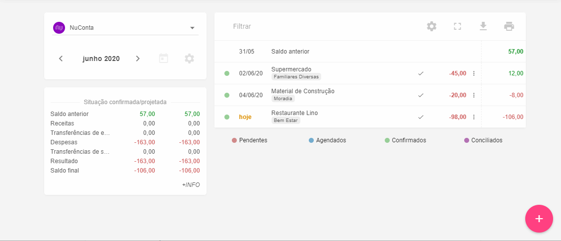 O título do tópico é auto explicativo “Exibir saldo acumulado por dia” uma forma de organizar a visualização das suas contas. A funcionalidade está disponível na tela de extrato de contas quanto na tela de lançamentos de caixa. Para habilitar basta ir até uma das telas e clicar na engrenagem e marcar a caixinha de exibir saldo acumulado por dia.