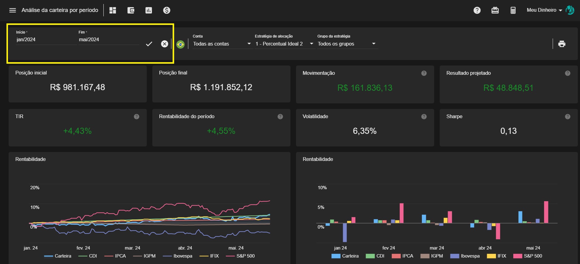 Agora é possível personalizar o período de visualização no relatório de análise de carteira de investimentos.