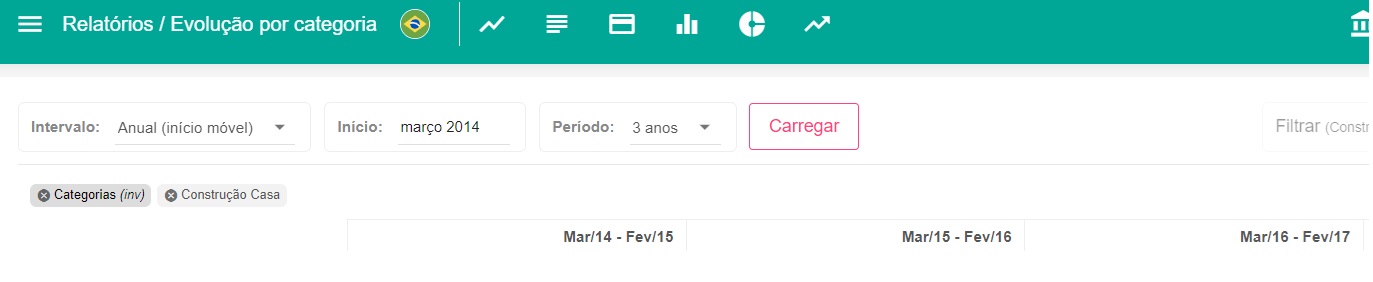 Atendendo pedidos, o relatório de evolução por categoria agora conta com a opção de selecionar o intervalo com a opção Anual(início móvel), começando o ano a partir do mês selecionado. Não sei vocês, mas particularmente eu amo esse relatório =)
