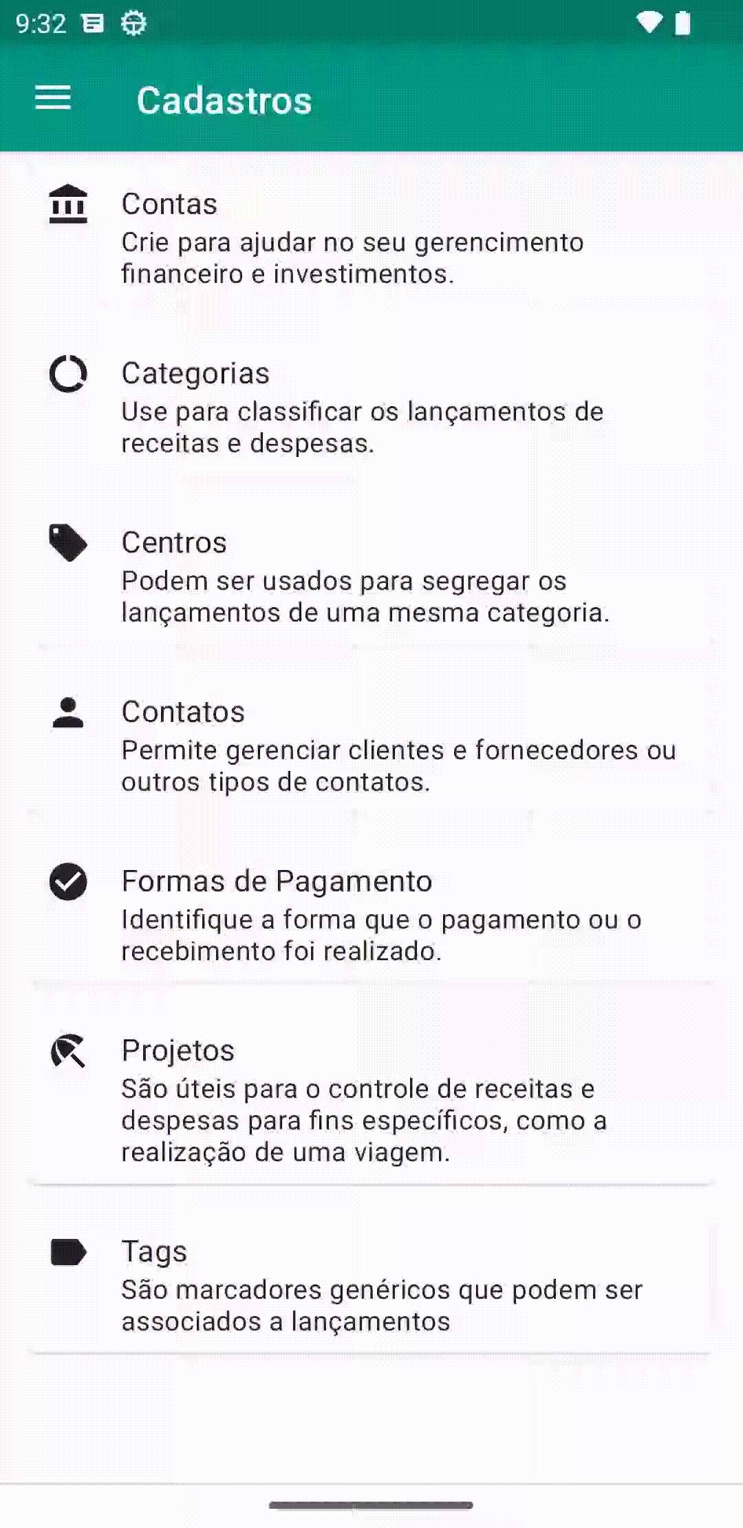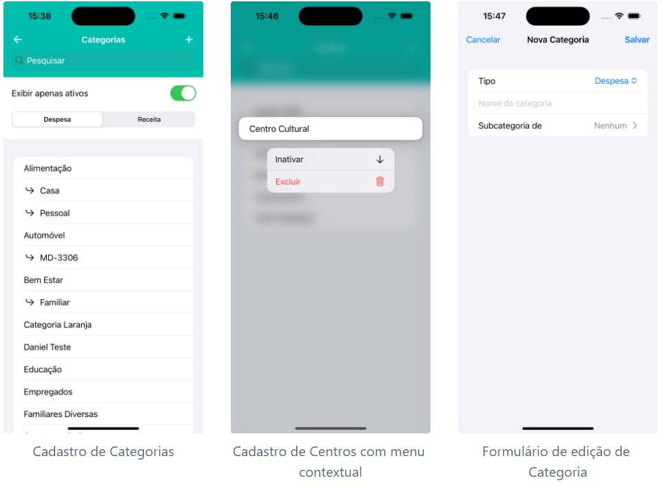 Reformulamos a tela de cadastro de categorias e centros.
