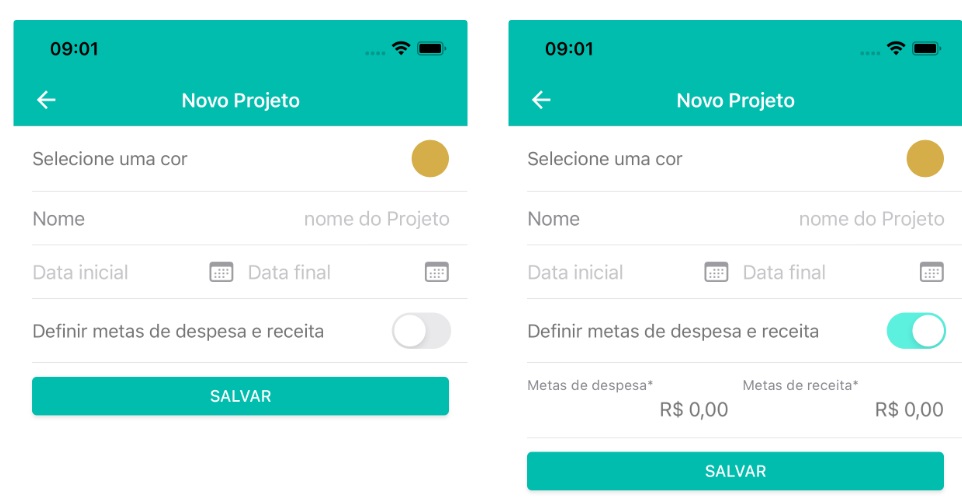 Os campos de Projetos foram reorganizados de forma que fique mais claro sobre o que se trata cada campo.