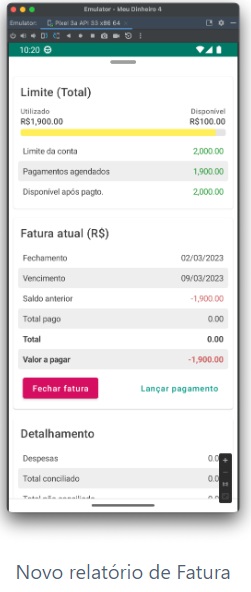Na tela de cartões, o relatório com as informações de fatura foi remodelado para ficar mais parecido com o da versão web.