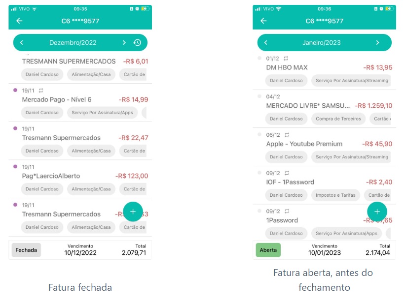 - Verde, a fatura ainda não fechou;