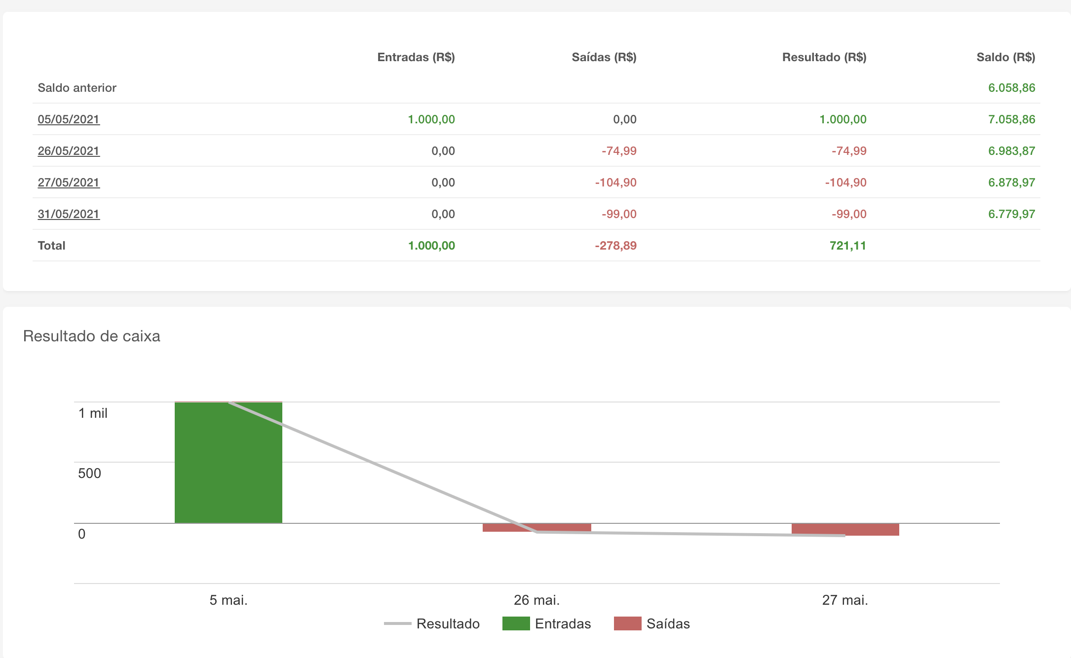 O relatório de Fluxo de Caixa passa a mostrar também os resultados de Caixa com a visão em barras das entradas e saídas de cada dia.