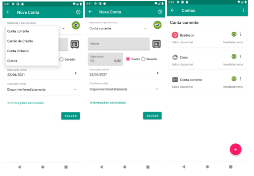 Destaque para o cadastro de Contas, que agora é possível criar contas assim como na web.