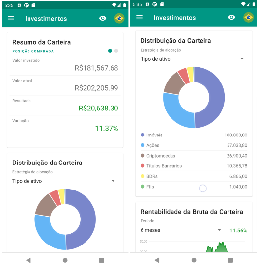 O módulo de investimentos ganhou alguns painéis presentes na versão web: