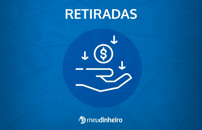 Eventos que retiram dinheiro da carteira são Retiradas. Por exemplo, venda de ações e cotas de fundos imobiliários, saques na poupança, resgates em fundos de investimento, etc.