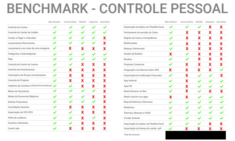 O comparativo foi finalizado no mês de outubro de 2020. Todo trabalho foi feito da forma mais isenta possível, inclusive se você discordar de algum dos pontos marcados, seja ele favorável ou não ao Meu Dinheiro, deixe seu comentário abaixo para que possamos vir a realizar algum ajuste. A ideia aqui é demonstrar de forma bem simples o tamanho da diferença na quantidade de recursos oferecidos pelo Meu Dinheiro. De certa forma não deixa de ser também uma maneira de vocês avaliarem a relação custo-benefício do Meu Dinheiro e o nosso incansável trabalho de evolução ao longo de todos estes anos.