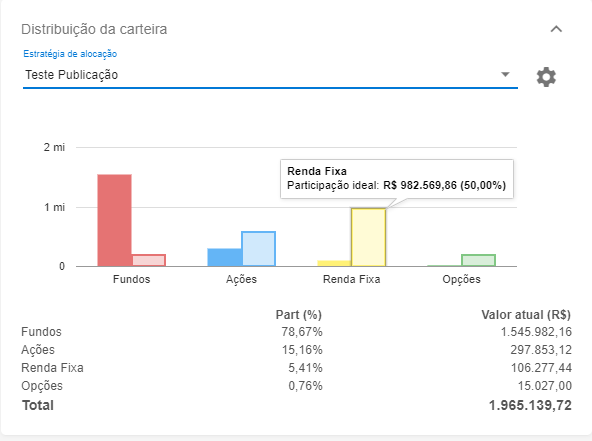 No campo “participação” defina os valores. Para visualizar a estratégia volte à visão geral e procure o card de “Distribuição da Carteira”. Deixe seu comentário dizendo o que achou dessa nova possibilidade de controle no sistema.