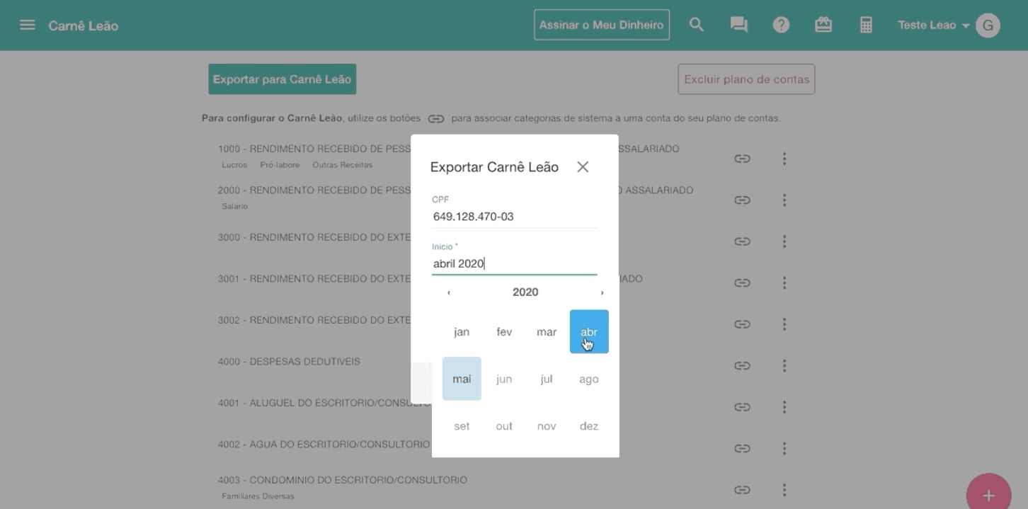Agora com o recurso de Carnê Leão do Meu Dinheiro tudo fica muito simples e fácil. A opção do Carnê Leão está disponível no menu principal do sistema e caso você tenha alguma dúvida basta acessar nossa documentação clicando aqui.