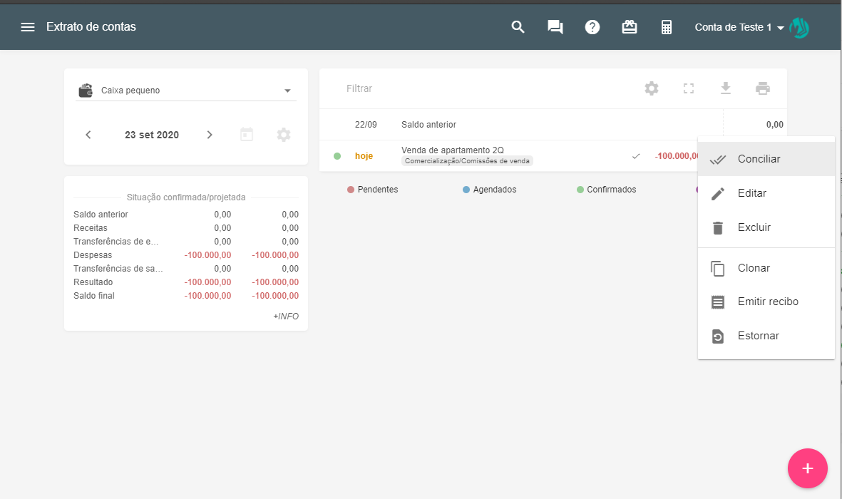 A principal diferença entre um painel e outro está basicamente no conceito de entradas e saídas e justamente nos lançamentos de “Transferências”. No painel de resultados de caixa são consideradas todas as entradas e saídas, lançamentos de despesas, receitas e transferências e a partir deste valor é calculado o resultado total do caixa em determinado mês. Por isto o saldo deste painel não é necessariamente a diferença entre receitas e despesas.