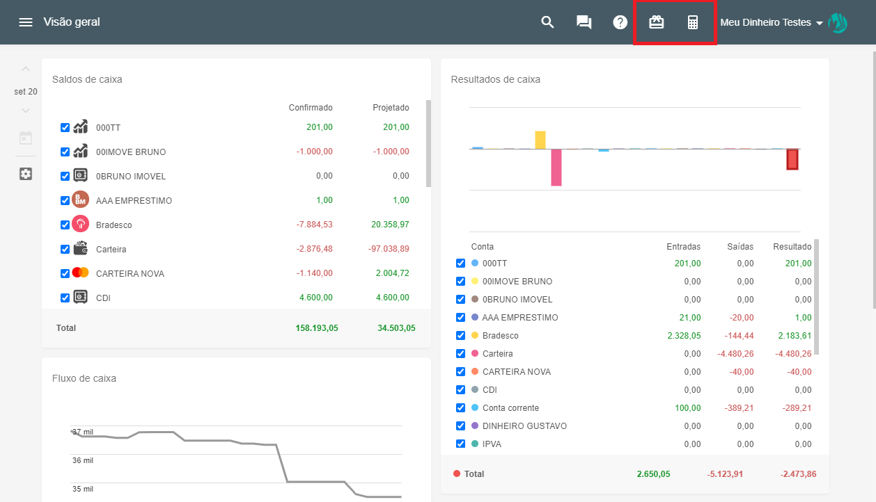 Funcionalidade Avançada - Diferença entre os painéis de “resultado de caixa” e “resultados do mês”