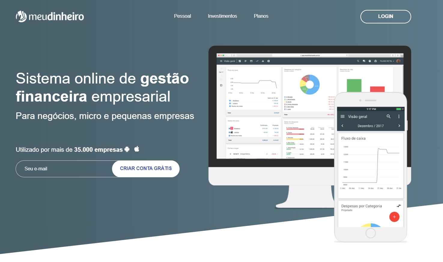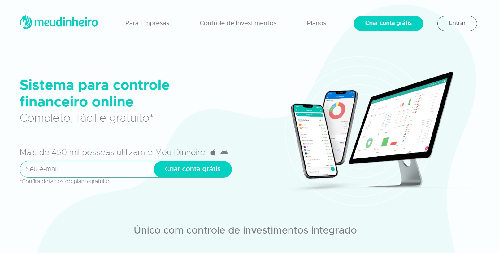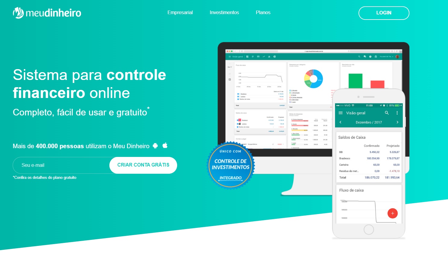Nova página Controle Financeiro Meu Dinheiro