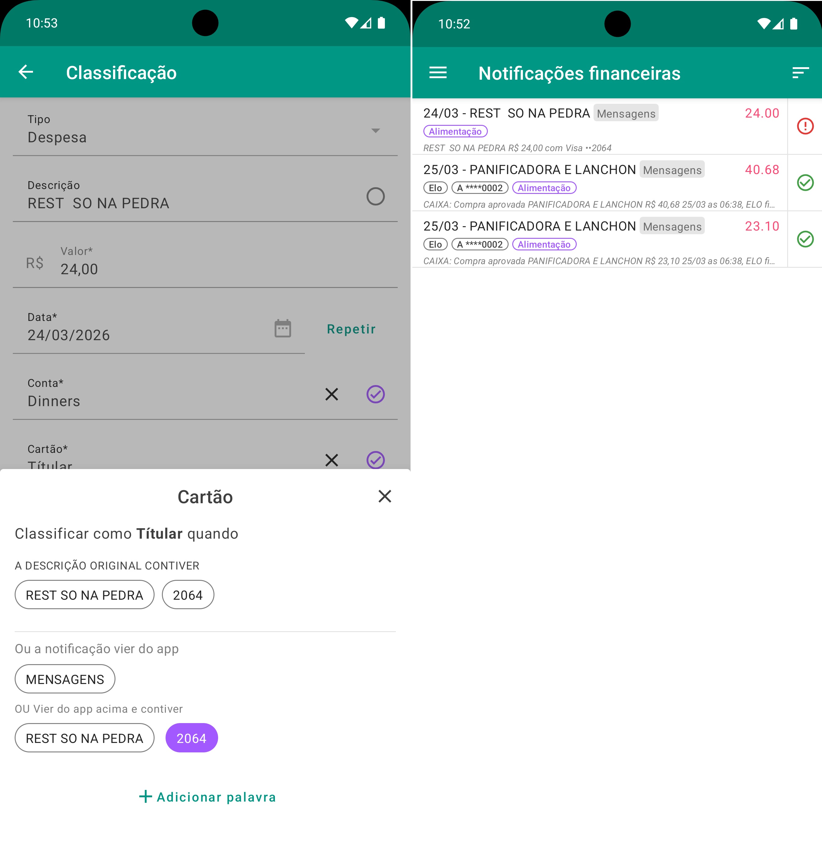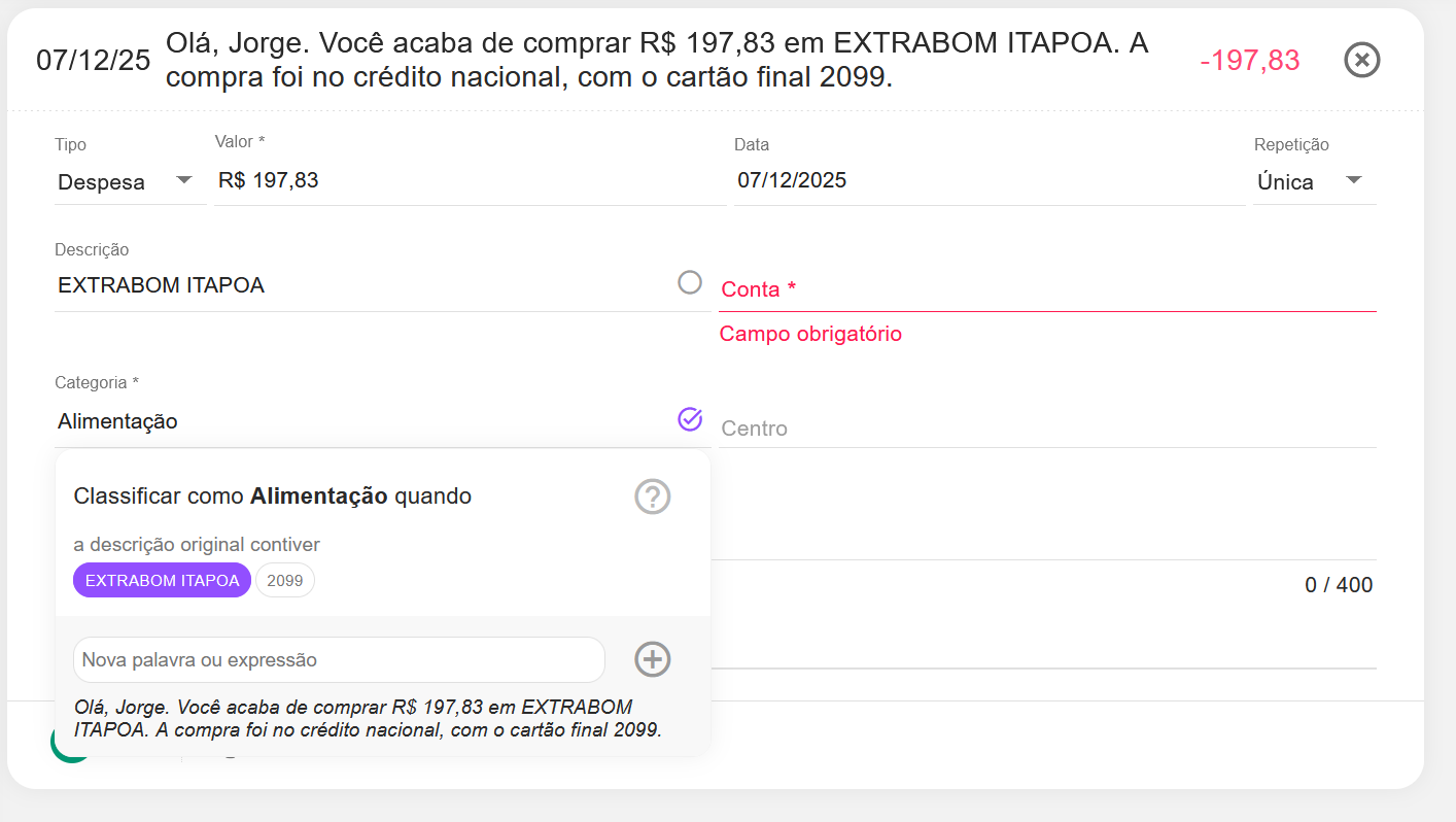 - Identificação e sugestão de termos e informações relevantes a partir das notificações financeiras recebidas;