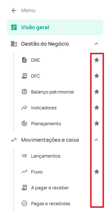 Agora na nova versão é possível favoritar subitens do menu com ícones exclusivos para cada um dos subitens.