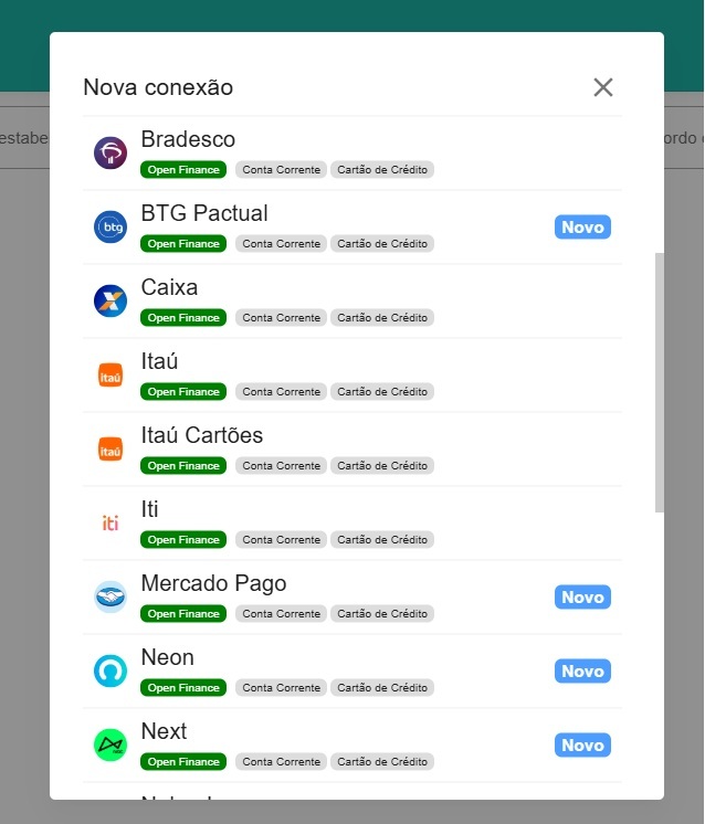 Esta é a lista com as novas conexões Open Finance que estão disponíveis a partir de agora: