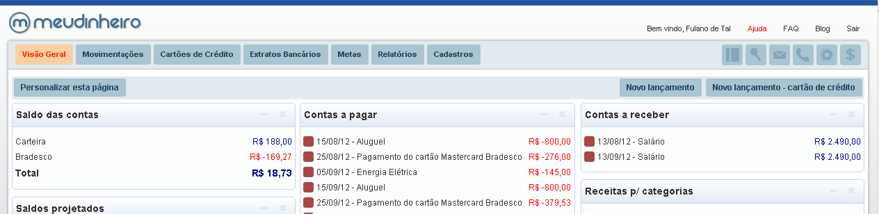 **Possibilidade incluir um lançamento normal ou de cartão de crédito direto na tela de Visão geral.