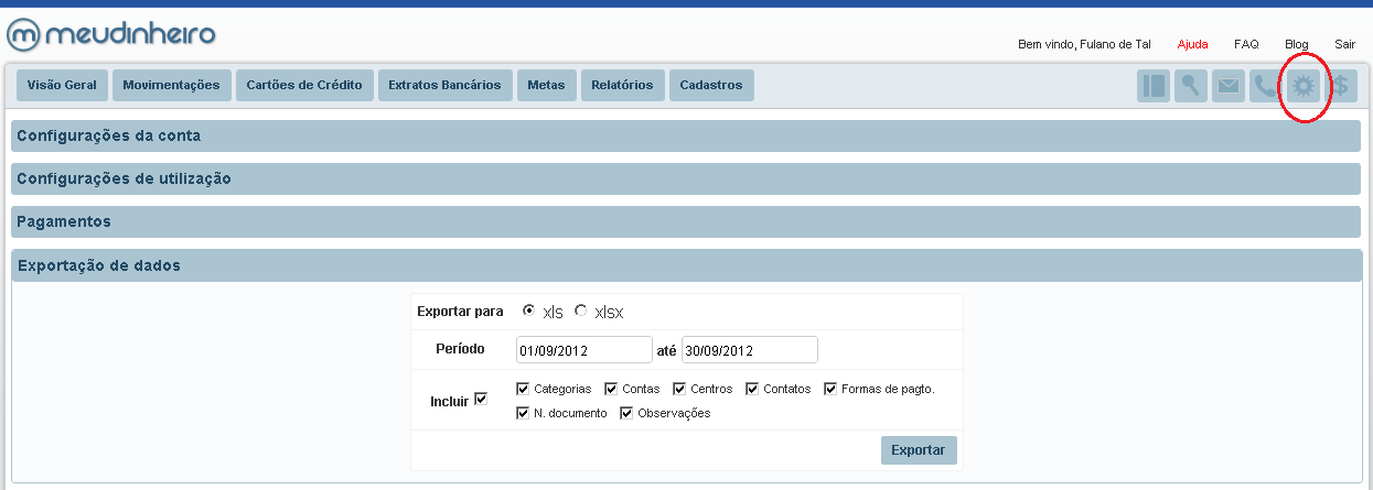 **Agora você pode exportar os seus lançamentos para planilhas do Excel. Para isto, basta acessar a tela de configurações e escolher o período e as informações desejadas.
