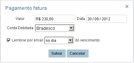 **Possibilidade de incluir lembrete por email quando do agendamento de um pagamento de cartão.