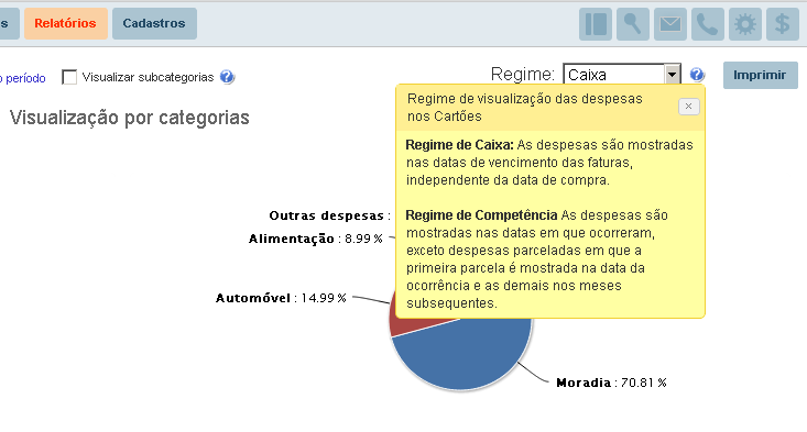 **Permite escolher por qual regime os relatórios Totais por categoria, Lançamentos por categoria/centro/contrato, bem como as metas serão apurados.