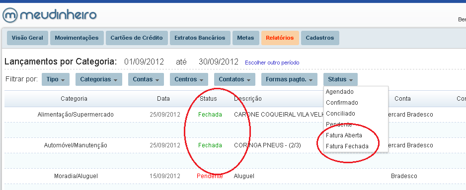 **Tratamento mais adequado dos lançamentos de cartão em relação a situação da fatura e opção de filtros por estes novos status.