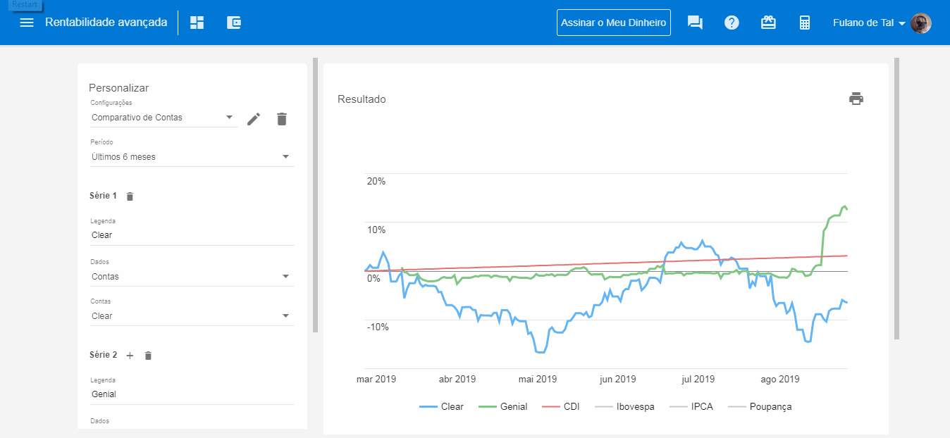 - Relatório avançado de rentabilidade (Possibilidade de comparar a rentabilidade da carteira com ativos e grupos de investimentos personalizáveis)